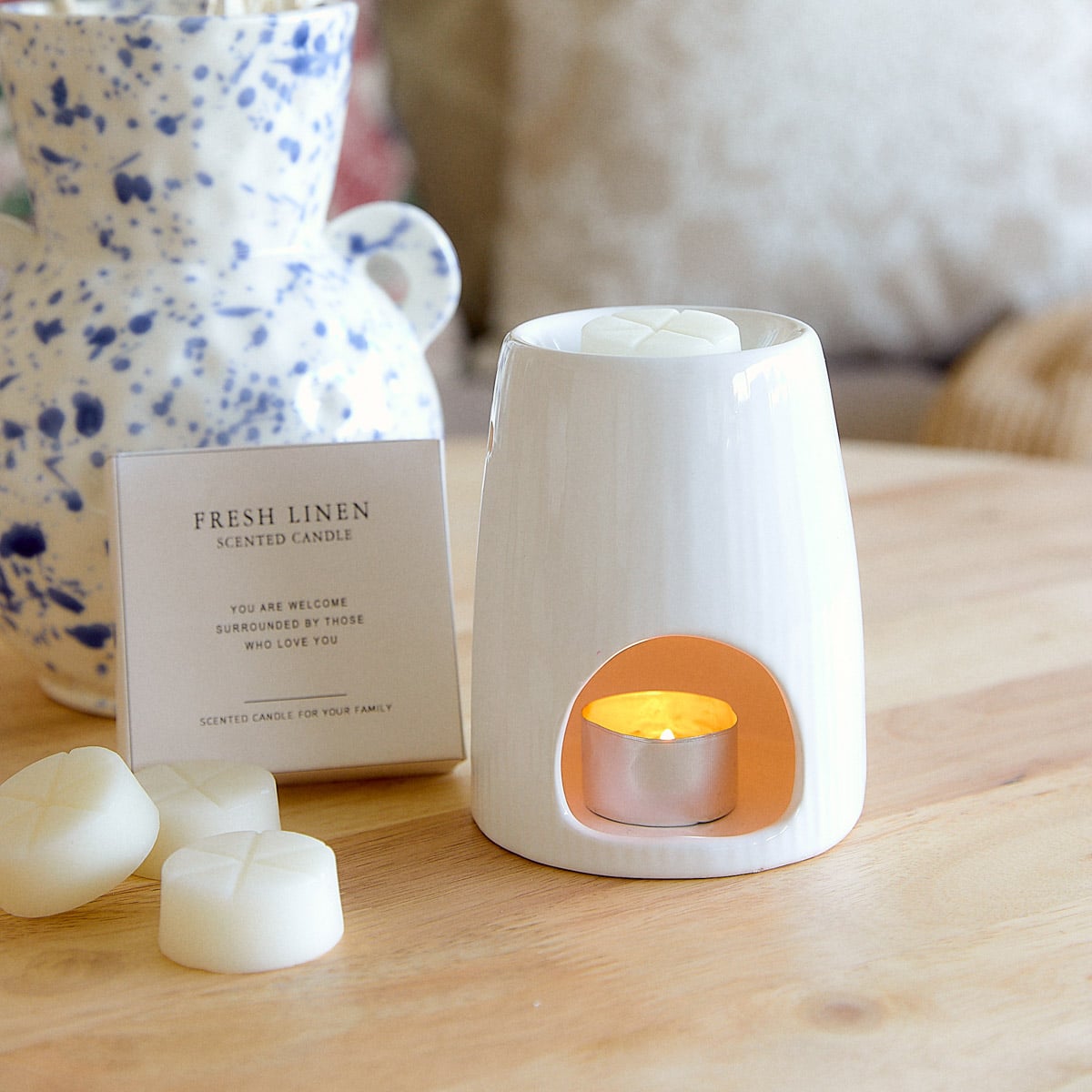 Ceramic fireplace | FIRES | with Fresh Linen wax 10×12.5 cm | 22G | 886176