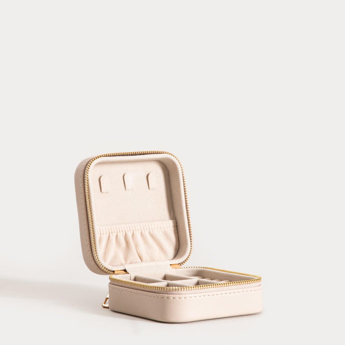 Jewelry box | RINAS | with striped stitching, small beige | 10.5×10.5×5 cm | 752810