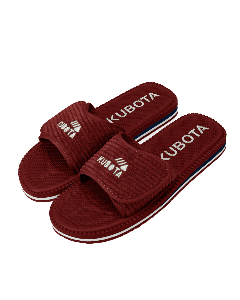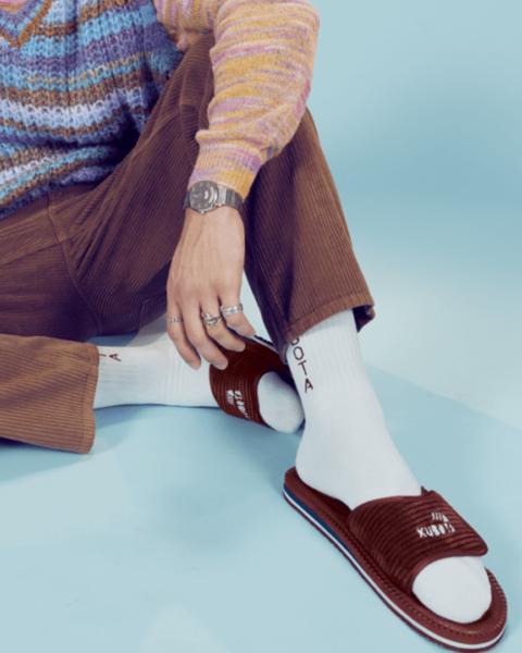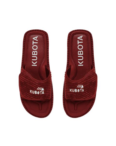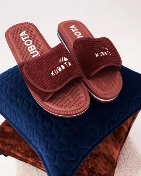 Corduroy is an interesting case that could inspire many doctoral theses. On one hand, it is often associated with echoes rather than the shouts of fashion, but on the other hand, everyone knows this material well. The delicate, characteristic ridges are making a bold comeback in various designs and styles. One such project is the Kubota Corduroy Slides in burgundy!