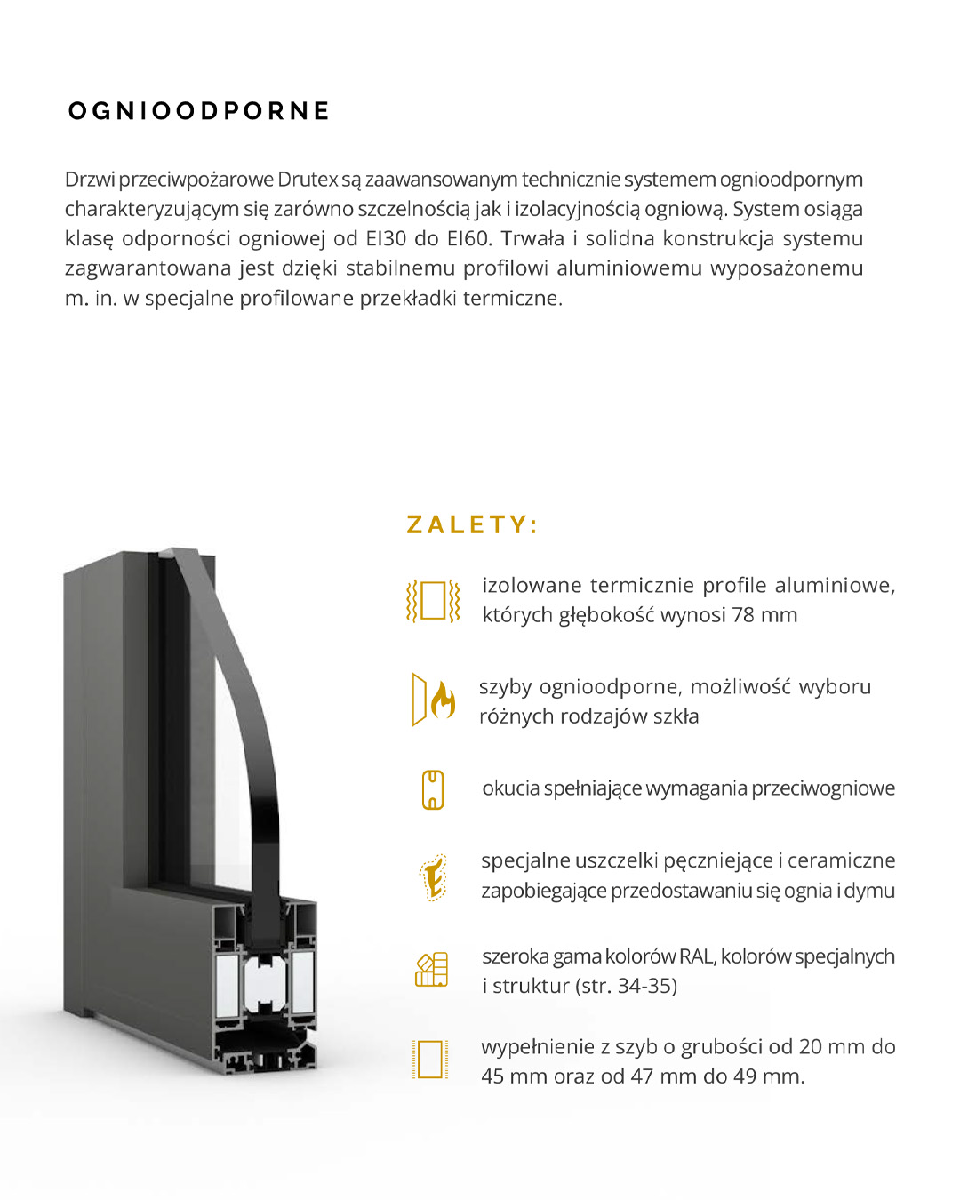 klasę odporności ogniowej od EI30 do EI60. Trwała i solidna konstrukcja systemu