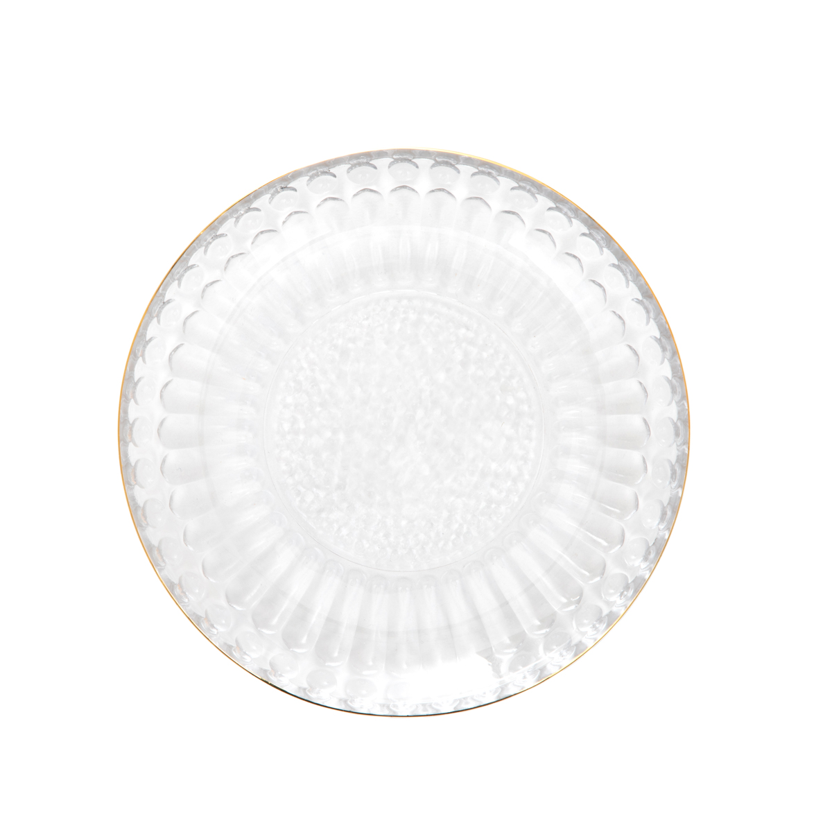 Talerzyk BARREL szklany w paski ze złotym rantem 15 cm